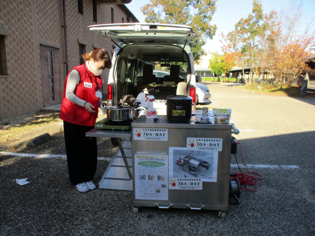 公益社団法人滋賀県栄養士会(JDA-DATしが)と協力し、中「非常食・災害食」テーマにセミナーを実施しました。非常食について講演いただいたほか、災害支援緊急車両JDA-DAT号を用いた災害時の調理も実演されました。実演後には参加者とともに試食を行い災害時の食支援に対する理解を深める機会となりました。