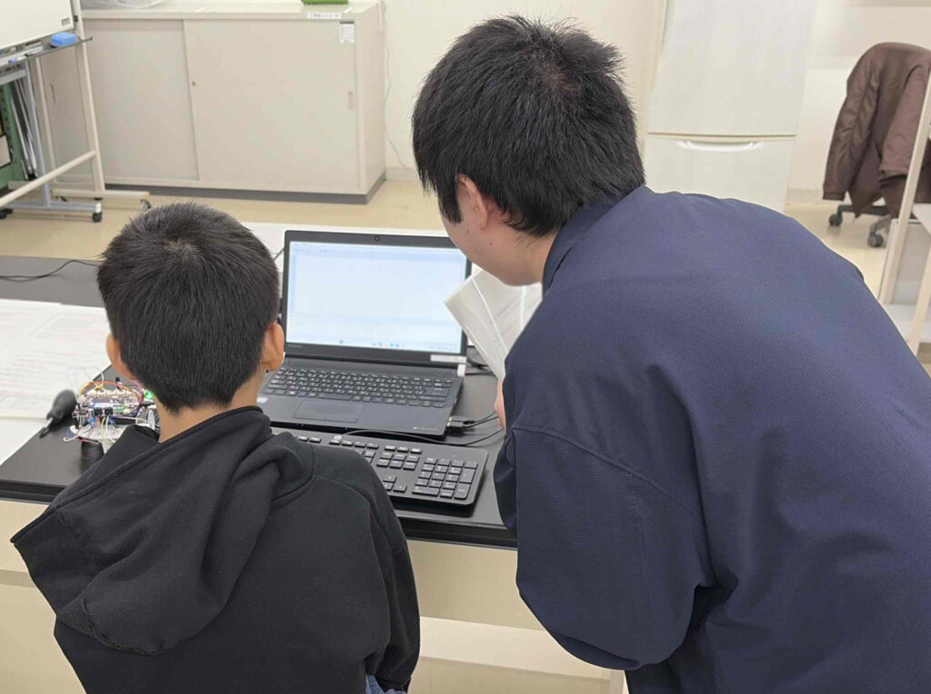 ロボットを動かすプログラムの作成を通して、簡単なプログラミングを体験いただきました。黒いテープでコースを作り、コースに沿って走行するよう、試行錯誤しながらプログラムを作る楽しさを味わっていただくことが出来ました。
