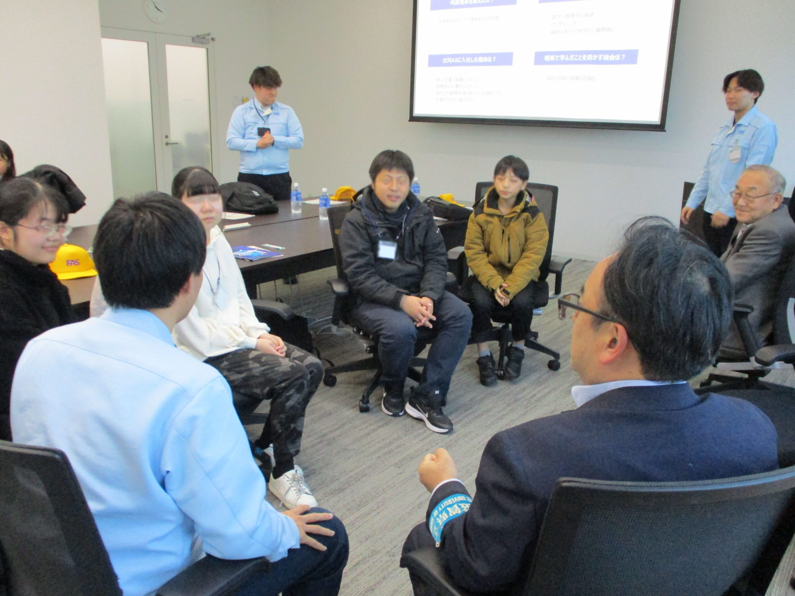 2025年1月12日(月・祝)14時00分から16時00分まで、古河AS株式会社本社において職場交流体験を実施しました。中高生6名、保護者4名、滋賀家県立大学生2名の参加がありました。